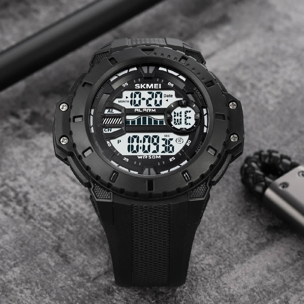 Часы Skmei 1885BKWT Black-White – это стильный мужской аксессуар со спортивным дизайном, который подходит для повседневной носки. Изготовленные из качественного полимера, они обладают водонепроницаемостью до 50 метров, что делает их идеальными для активного образа жизни. Черный корпус и ремешок из каучука обеспечивают не только прочность, но и комфорт во время ношения. Электронный циферблат оснащен подсветкой, позволяющей легко считывать время в темноте. Часы также имеют полезные функции, такие как будильник, календарь и секундомер. Гарантия на продукцию составляет 12 месяцев. Размеры часов – 56 х 55 мм, вес – 53 г, а длина ремешка – 25 см с шириной 21 см. Производитель – Китай.