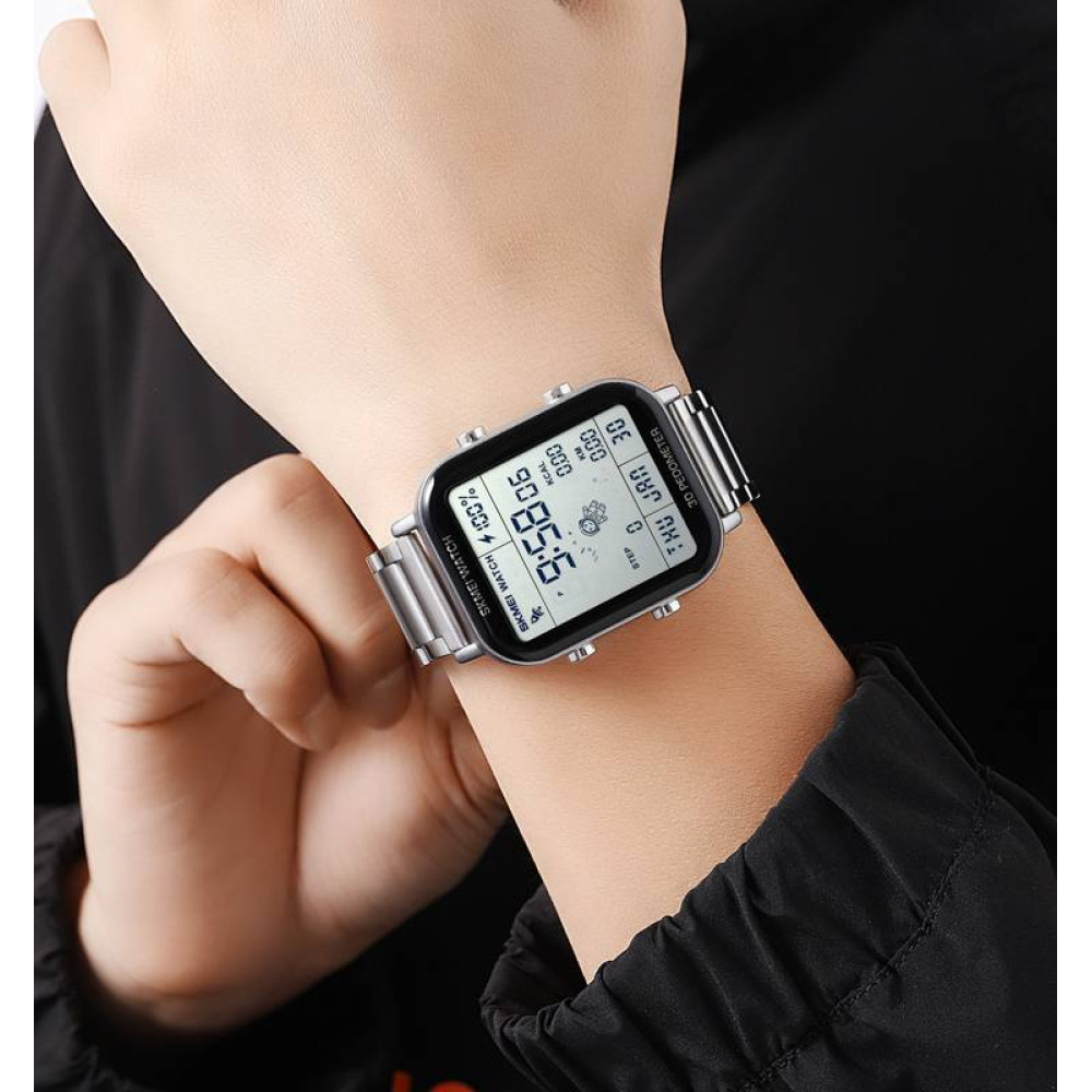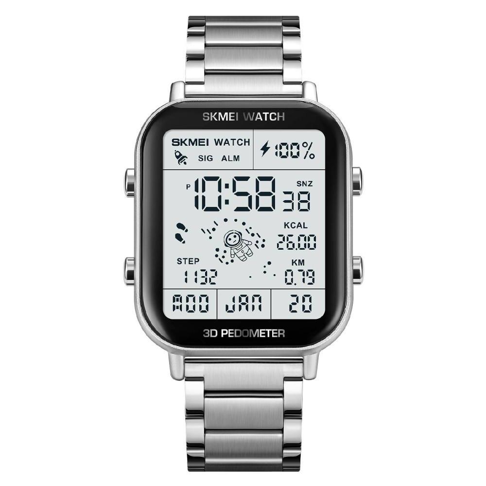Часы Skmei 1888SI Silver - это стильный мужской аксессуар с металлическим корпусом и серебристым браслетом из нержавеющей стали. условиях. Часы оснащены функциями будильника, календаря, второго. часового пояса, счетчика калорий, секундомера и шагомера. Электролюминесцентная подсветка придает элегантности и обеспечивает видимость в темноте. его комфортным в ношении. Китае.