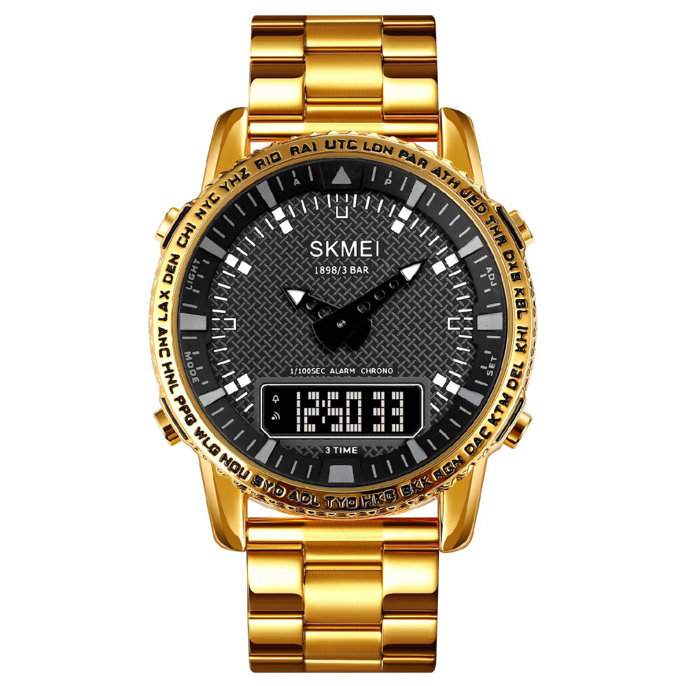 Часы Skmei 1898GDBK в золотисто-черном исполнении – идеальный выбор для стильных мужчин. Эти кварцевые часы имеют круглую форму корпуса из металла, диаметром 45 мм и толщиной 13 мм. Водонепроницаемость до 30 м обеспечивает надежность в разных условиях. Минеральное стекло защищает циферблат, сочетающий стрелочно-электронный стиль с яркой электролюминесцентной подсветкой.