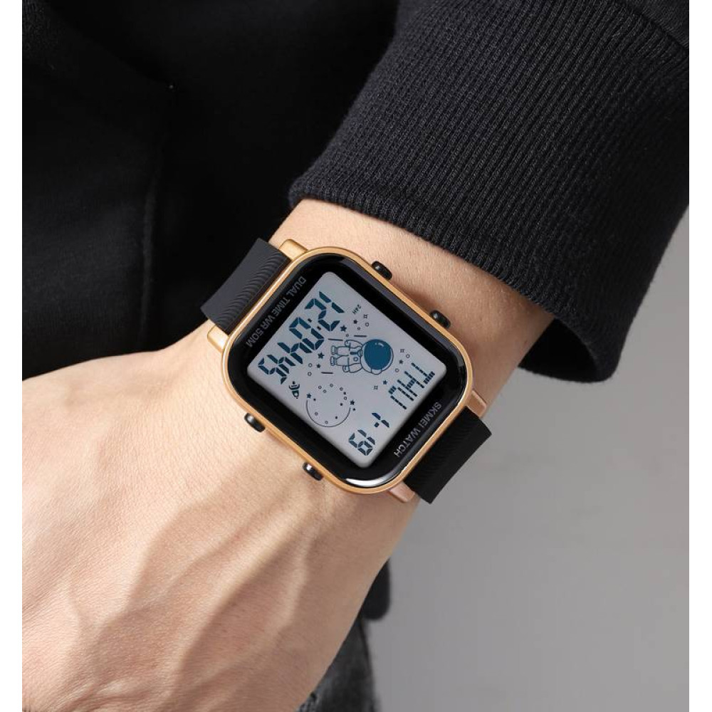 Представляем часы Skmei 1971RG в элегантном золотистом цвете, которые станут отличным дополнением к вашему стилю. Этот универсальный аксессуар подходит как для мужчин, так и для женщин, имеет прямоугольную форму корпуса и изготовлен из полимера, что обеспечивает легкость и удобство в носке. Водонепроницаемость до 50 м гарантирует надежность в любых условиях. Часы оснащены электронным механизмом и функциями будильника, календаря, секундомера и второго часового пояса. Черный каучуковый ремешок обеспечивает комфорт и стиль, а электролюминесцентная подсветка позволяет легко считывать информацию в темноте. Часы имеют гарантию 12 месяцев и подходят для повседневного использования в стиле casual. Размеры часов составляют 54 х 39 мм, вес – 51 г.