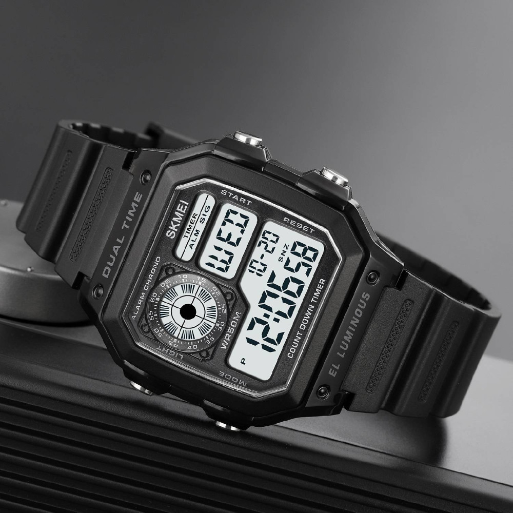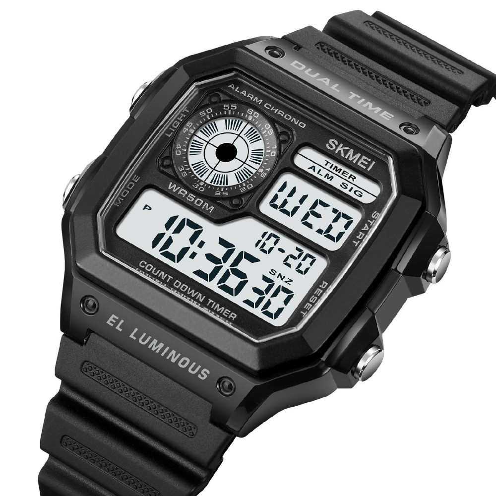 Электронный циферблат с арабскими цифрами обеспечивает легкость считывания времени. Часы оборудованы подсветкой, будильником, календарем и секундомером, что делает его универсальным помощником в повседневной жизни. Квадратная форма корпуса в черном цвете придает элегантности, а стильный дизайн подойдет как мужчинам, так и женщинам.