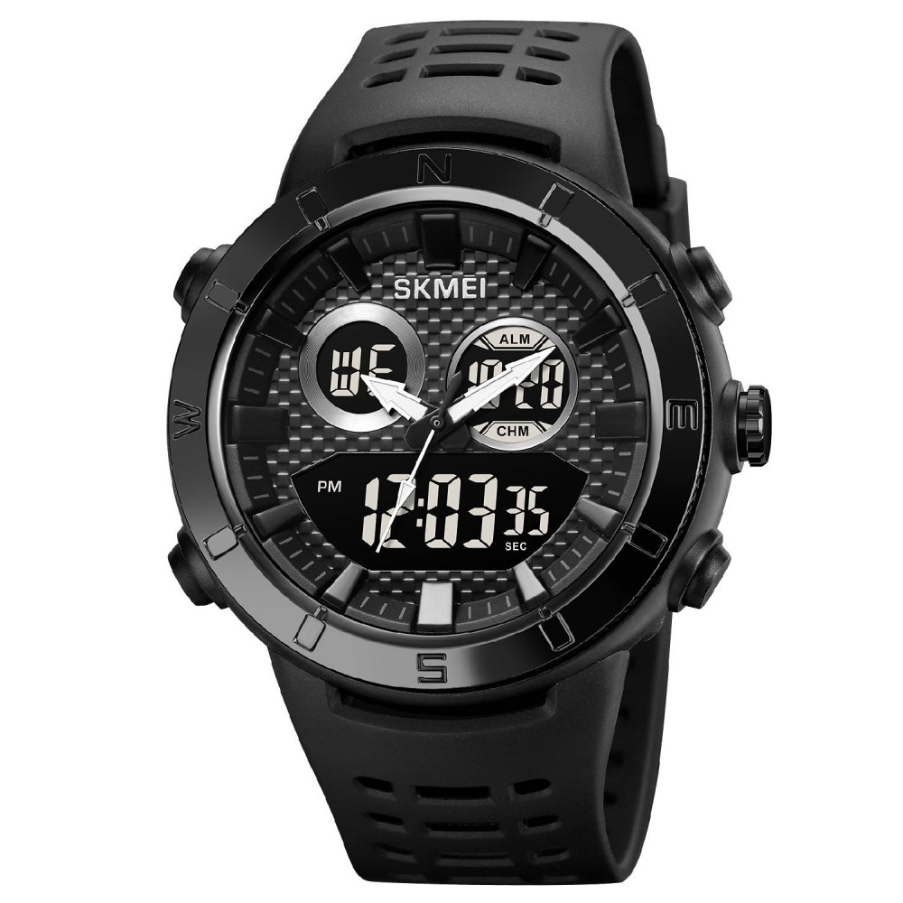 Этот спортивный и casual стильный аксессуар предоставляет пользователю дополнительные функции, такие как будильник, календарь, второй часовой пояс. Электролюминесцентная подсветка делает его удобным в темноте. на продукт составляет 12 месяцев. Часы доступны в классическом черном цвете, что придает ему универсальности. Производитель - Китай.