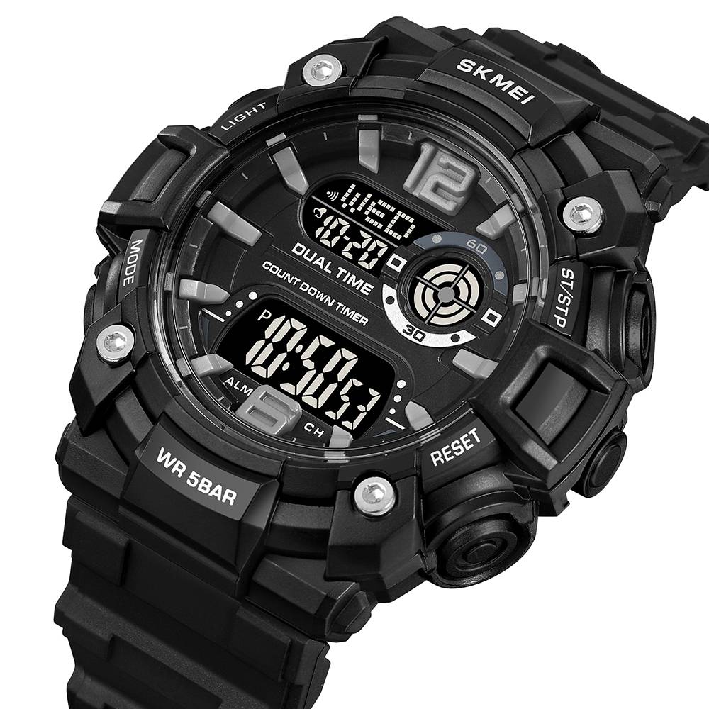 Часы Skmei 2018BKBK Black-Black - современный спортивный аксессуар, объединяющий стиль и функциональность. Часы оснащены электронным циферблатом с подсветкой и поддерживает множество полезных функций, таких как будильник, календарь, секундомер и второй часовой пояс. Его размеры составляют 57,6 х 53,3 мм, а вес – 61 г. и числа.Гарантия на часы составляет 12 месяцев.