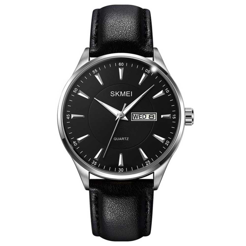 Часы Skmei 2075SIBK Silver-Black сочетают стиль и функциональность. Изготовленные из металлического корпуса серебристого цвета и черного кожаного ремешка, эти мужские часы имеют классический круглый дизайн. Водонепроницаемость до 30 метров и кварцевый механизм обеспечивают удобство использования. Минеральное стекло надежно защищает циферблат с индикацией часов, минут, секунд, дня недели и числа. Гарантия на часы составляет 12 месяцев. Размеры часов: 45,5 х 40 мм, длина ремешка – 25,5 см, ширина ремешка – 18 мм. Вес изделия составляет 43 грамма. Часы представлены без подсветки и имеют стрелочный циферблат с арабскими цифрами и индексами. Изготовлен в Китае.