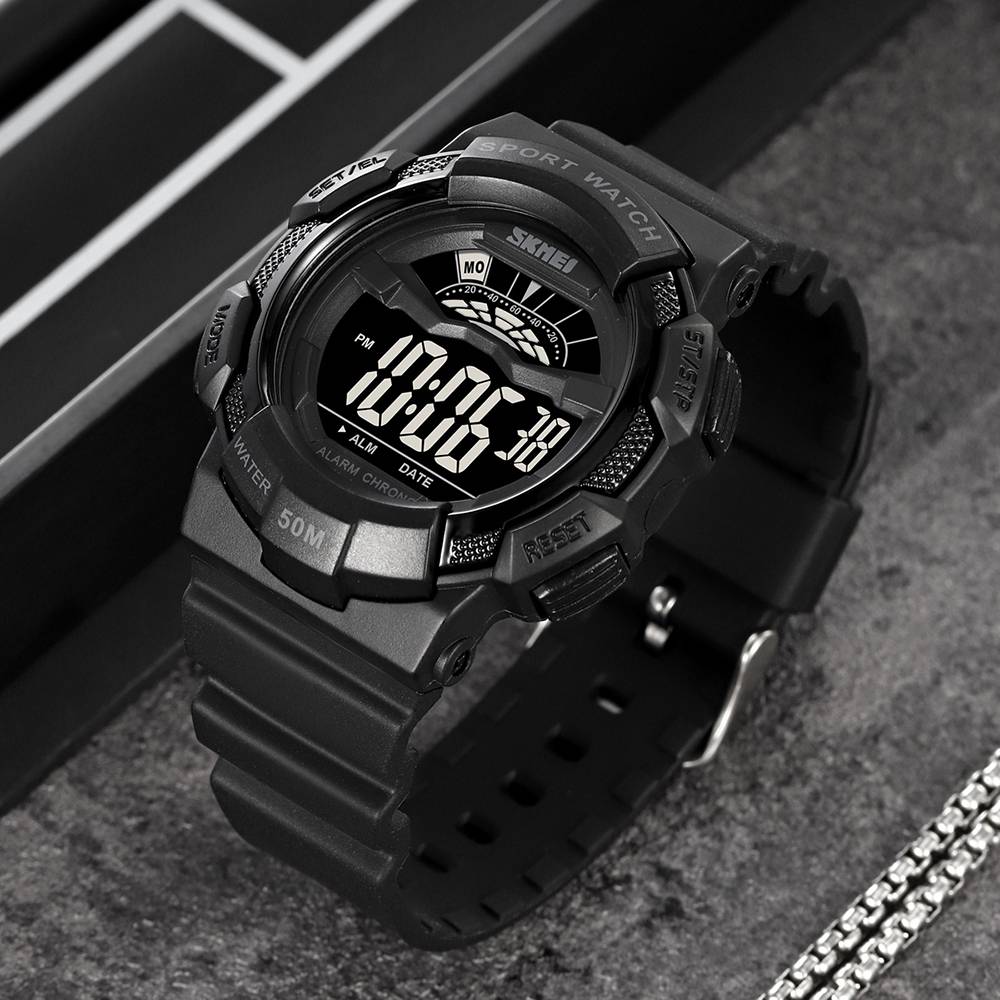 Функциональность Skmei 2153BKBK включает в себя будильник, календарь, секундомер и возможность отображения второго часового пояса. Люминесцентная подсветка позволяет удобно использовать часы в темноте. Он оснащен электронным циферблатом, позволяющим легко отслеживать часы и минуты.