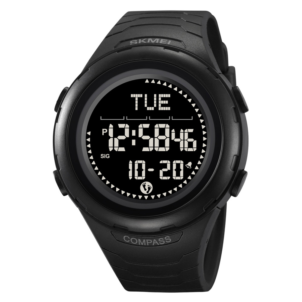 Модель оснащена полезными функциями, такими как календарь, компас, секундомер, будильник, таймер, шагомер и счетчик калорий. Дополнительная электролюминесцентная подсветка обеспечивает видимость во тьме. Размеры часов составляют 47,2 х 48,2 мм, вес – 51 г. Гарантия на данную модель составляет 12 месяцев. Цвет корпуса и ремешка – классический черный, придающий универсальности и стильной элегантности. Бренд Skmei гарантирует высокое качество и надежность.