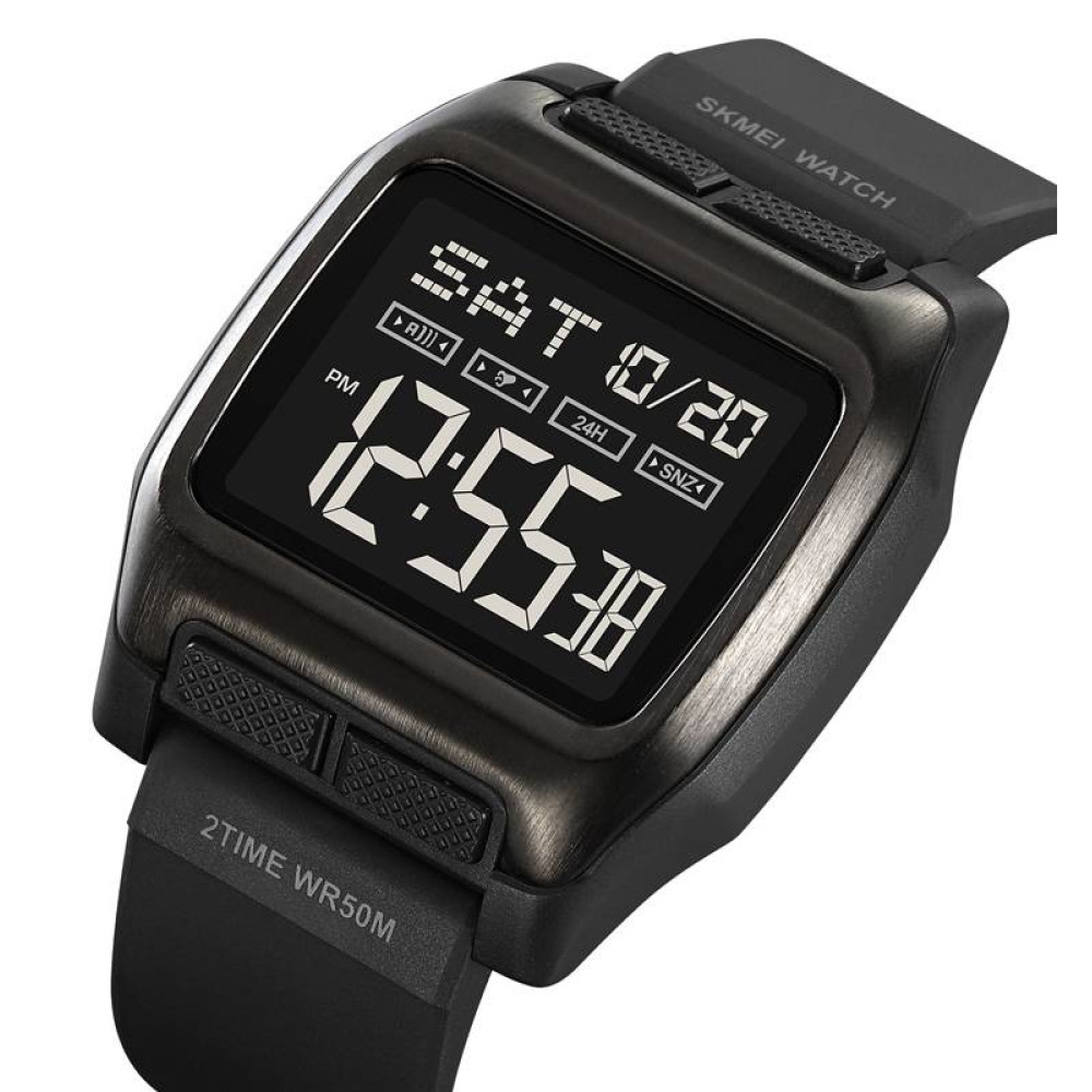 Часы Skmei 2193BKBK Black – это стильный мужской аксессуар, отличный вариант для повседневной носки. Он имеет водонепроницаемость до 50 метров и выполнен из крепкого полимера, что обеспечивает долгий срок службы. Ремешок из каучука обеспечивает комфорт при ношении. Часы оснащены электронным циферблатом с арабскими цифрами, подсветкой и функциями будильника, календаря и секундомера. Квадратная форма корпуса вместе с чёрным цветом подчеркивает его современный дизайн. Гарантия на устройство составляет 12 месяцев. Размеры часов 51,5 х 44,3 мм, а вес – 49 г.