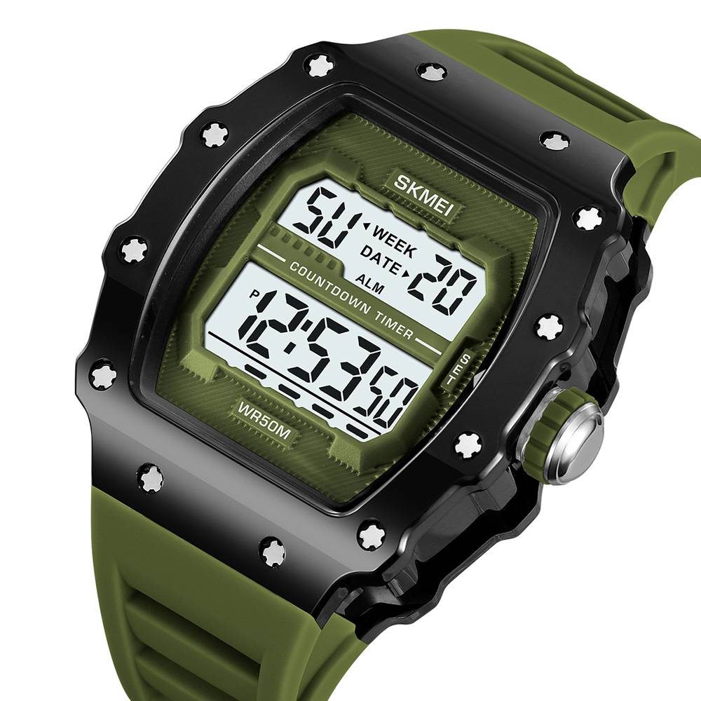 Часы Skmei 2296BKGN Black-Green сочетает в себе стиль и функциональность. Благодаря водонепроницаемости до 50 м, эти мужские спортивные часы станут надежным спутником в любых условиях. Корпус из полиуретана и силиконовый ремешок обеспечивают комфорт и стойкость к износу. Электронный механизм с различными функциями, такими как будильник, календарь, секундомер и второй часовой пояс делают его очень практичным. Стильный черный корпус с зелеными упорами дополняет элегантный прямоугольный дизайн. Часы имеют электролюминесцентную подсветку и арабские цифры для удобства чтения. Гарантия на продукт составляет 12 месяцев, а его вес всего 64 г. Размеры часов составляют 44,3 х 52 мм, а длина ремешка – 24 см.