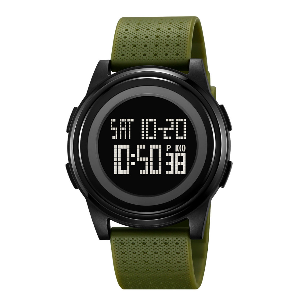 Часы Skmei 2378AG Army Green – это стильный и практичный аксессуар для мужчин, выполненный в спортивном и casual стилях. Он имеет электронный механизм и круглый корпус из полиуретана, обеспечивающий водонепроницаемость до 50 метров. Цифровой циферблат с арабскими цифрами содержит индикацию часов, минут, секунд, месяца, дня недели и числа. Часы оснащены различными функциями, такими как второй часовой пояс, хронограф, будильник и календарь. Подсветка – электролюминесцентная, что обеспечивает удобство использования в темноте. Ремешок также изготовлен из полиуретана и имеет зеленый цвет. Часы поставляются с гарантией 12 месяцев и комплектуются батарейкой CR2025. Размеры часов составляют 49,1 х 49,3 мм, а вес – 42 г. Страна производства – Китай.