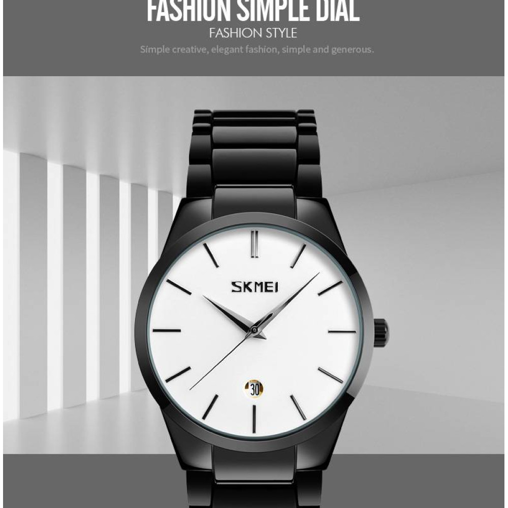 Часы Skmei 9140BKWT Black-White – стильный и практичный аксессуар для современного мужчины. Корпус изготовлен из металла, а ремешок – из нержавеющей стали, что обеспечивает надежность и долговечность. Часы имеют водонепроницаемость до 30 метров, что позволяет использовать его в повседневной жизни без опасений за его функциональность.