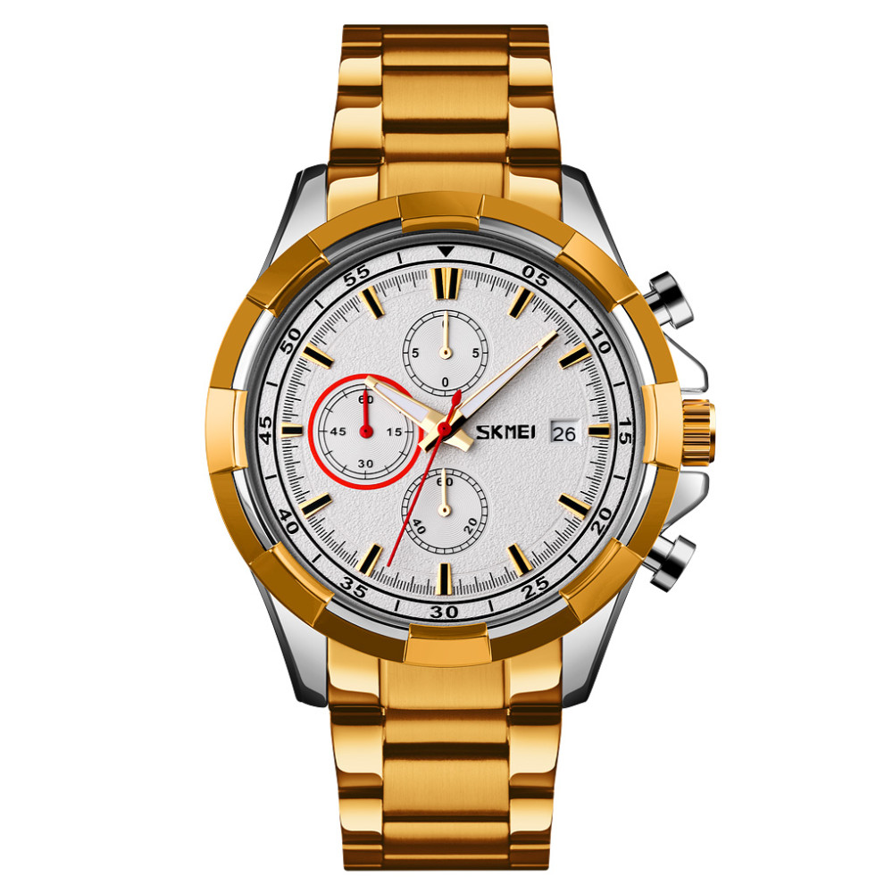 Часы Skmei 9192GD Gold – это стильный и практичный аксессуар для современного мужчины. Часы имеют функцию календаря и водонепроницаемый до 30 м. Размеры – 48 х 53 мм, а длина ремешка составляет 22 см. Стильный циферблат представлен как индексами, так и арабскими цифрами, что делает его удобным в использовании.