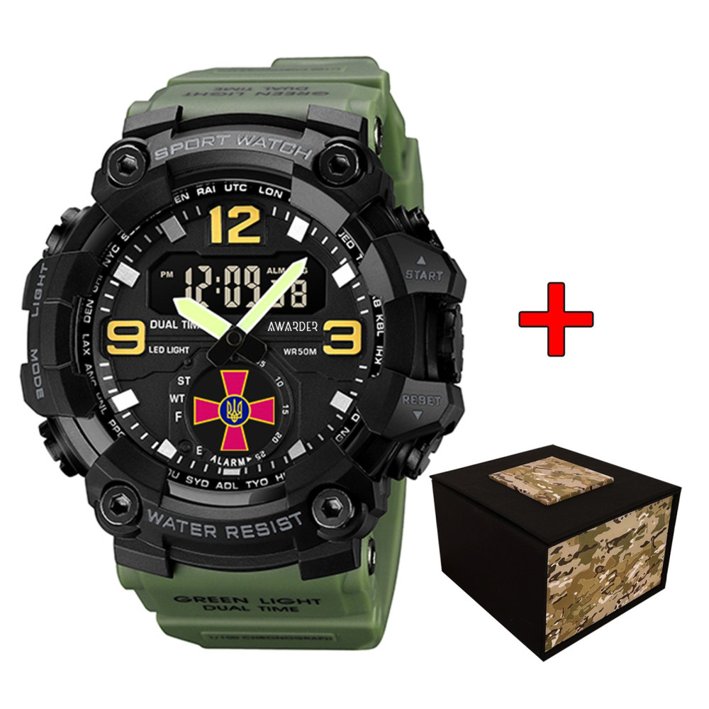 Спортивные мужские часы Awarder 003AGSU ВСУ Зеленые + Коробка