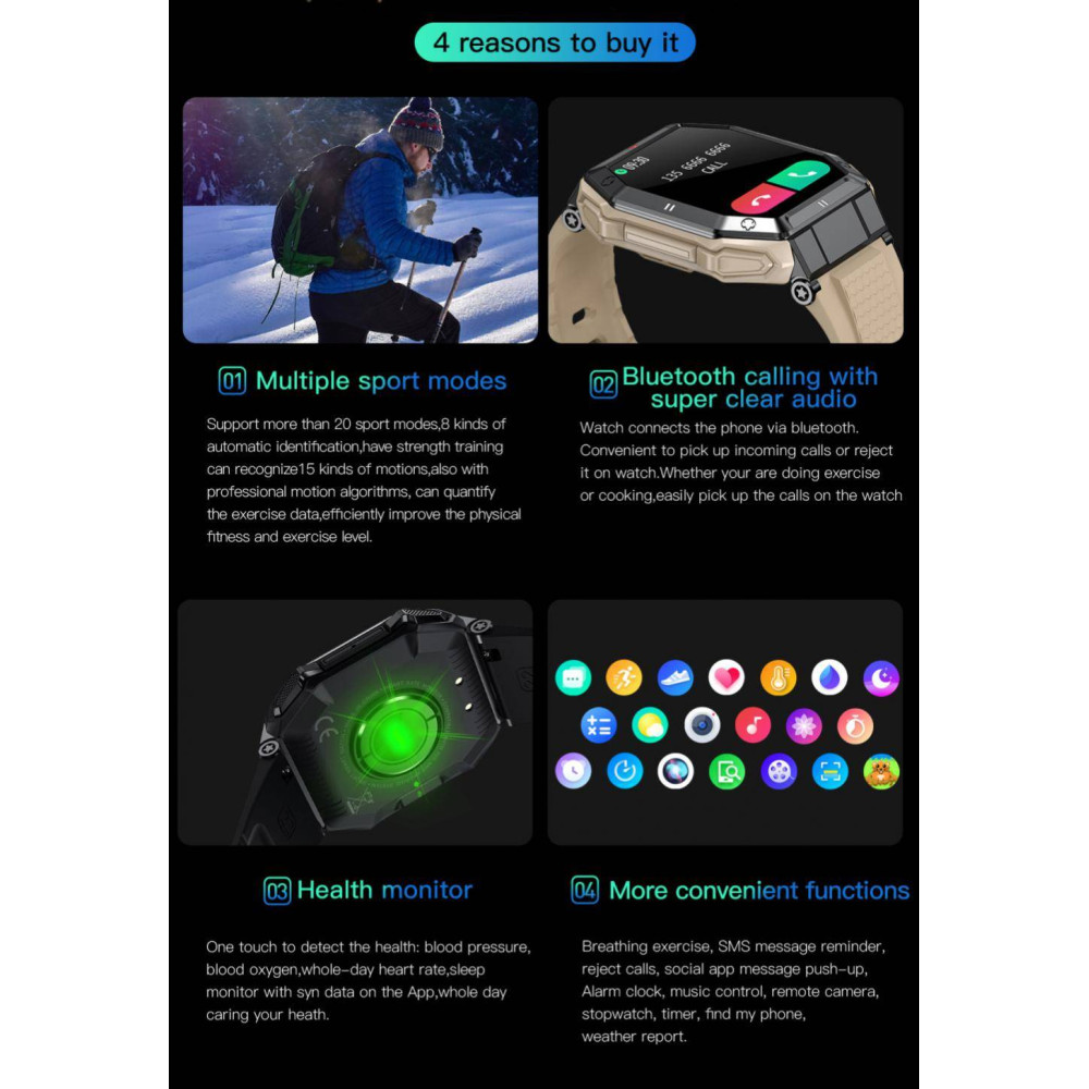 Откройте для себя смарт-часы Modfit Shockwave Khaki – идеальное сочетание стиля, функциональности и надежности. Этот современный смарт-часы не только станут чудесным аксессуаром, но и незаменимым помощником в вашей активной жизни.