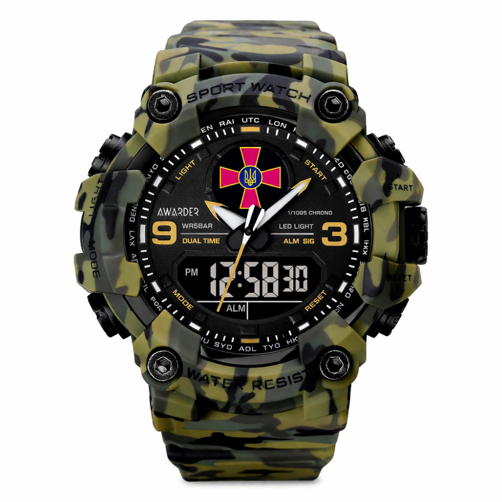 Awarder 001 ЗСУ Army Green – це ідеальний чоловічий годинник для тих, хто цінує активний стиль життя та військову естетику. Цей спортивний годинник поєднує в собі надійність та функціональність, що робить його незамінним аксесуаром для справжніх чоловіків.