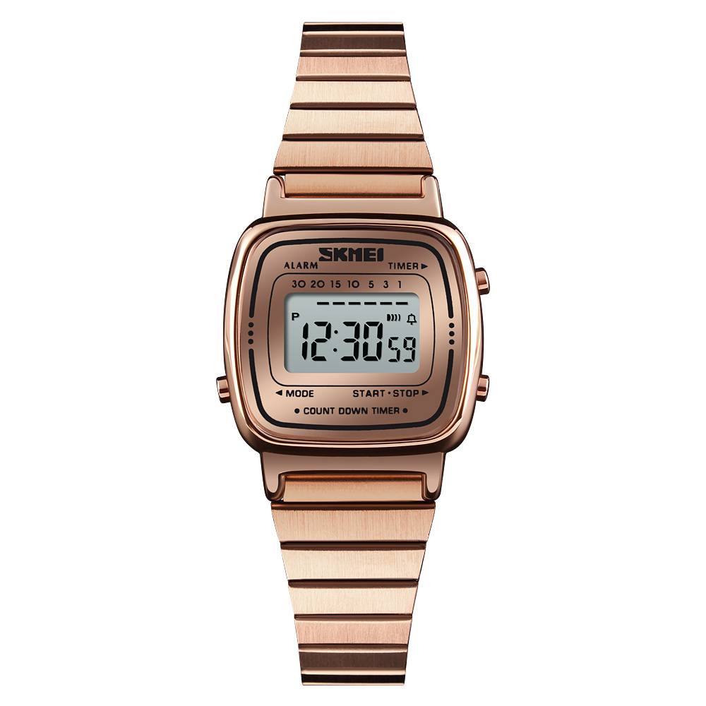 Часы Skmei 1901SRG Rose Gold Steel – это стильный электронный аксессуар для женщин, сочетающий элегантность и функциональность. Корпус из нержавеющей стали в цвете розового золота и прямоугольная форма придают часам изысканный вид. Он обладает водонепроницаемостью до 30 метров и оснащен электронным циферблатом с арабскими цифрами. Часы также функционируют как будильник и имеют календарь и хронограф. Длина ремешка составляет 21,5 см, ширина – 10 см, а общий вес – 38 г. Гарантия на продукцию составляет 12 месяцев. Производитель – Китай.