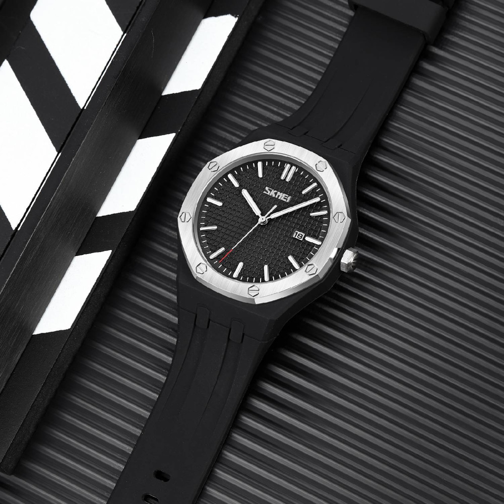 Часы Skmei 9299BKBK Black-Black - идеальный вариант для тех, кто ценит стиль и функциональность. С водонепроницаемостью до 30 метров и кварцевым механизмом эти часы обеспечивают надежность в любых условиях. Металлический корпус серебристого цвета сочетается с черным силиконовым ремешком, выглядяще современно и изящно. Циферблат защищен минеральным стеклом и имеет стрелочный тип, а также индикацию часов, минут и секунд. Встроенный календарь и люминесцентная подсветка придают практичность. Размеры часов составляют 53 х 43 мм, а длина ремешка – 24,5 см. Гарантия на изделие составляет 12 месяцев. Эти часы унисекса подходят для любого возраста и стиля.