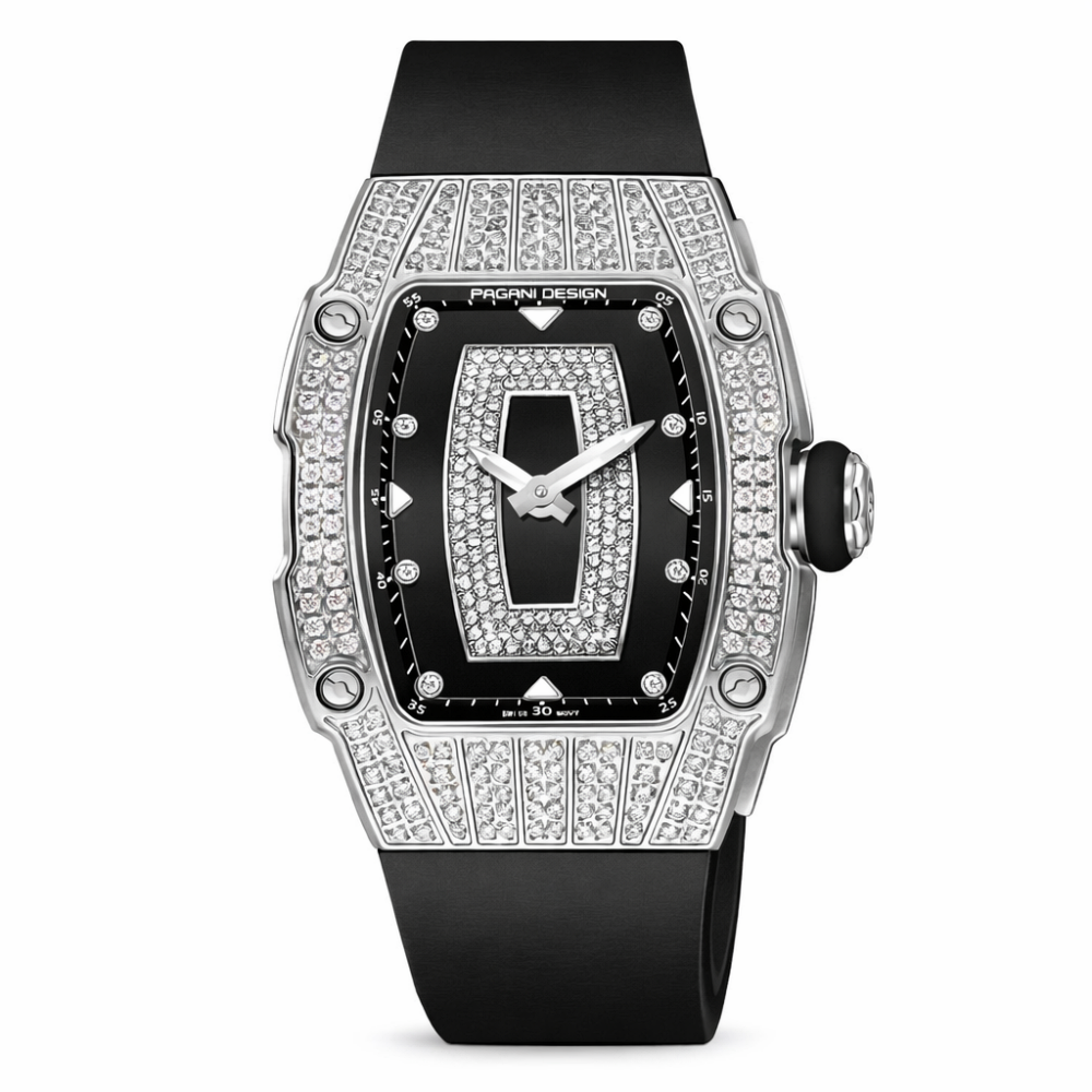 Часы Pagani Design PD-YS013 Silver-Black – это стильный и элегантный аксессуар для современной женщины. Корпус нержавеющей стали серебристого цвета сочетается с черным силиконовым ремешком, что обеспечивает комфорт и удобство в повседневном использовании. Модель имеет классический стрелочный циферблат с арабскими цифрами и точками, дополненный люминесцентной подсветкой для улучшенной видимости во тьме.