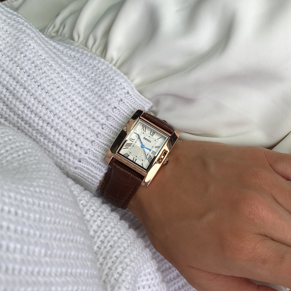 Часы Skmei 1085BN Brown – это классический женский аксессуар, сочетающий в себе элегантность и функциональность. Корпус изготовлен из металла золотистого цвета, а ремешок из качественной кожи коричневого оттенка, что обеспечивает комфорт при ношении. Часы имеют прямоугольную форму корпуса с размерами 39 х 30 мм и минеральное стекло, защищающее циферблат со стрелками и римскими цифрами. Благодаря водонепроницаемости до 30 метров, эти часы подходят для ежедневного использования. Гарантия на изделие составляет 12 месяцев, и его механизм является кварцевым. Общий вес часов составляет 21 грамм. Skmei – бренд, известный своим качеством и стильным дизайном.