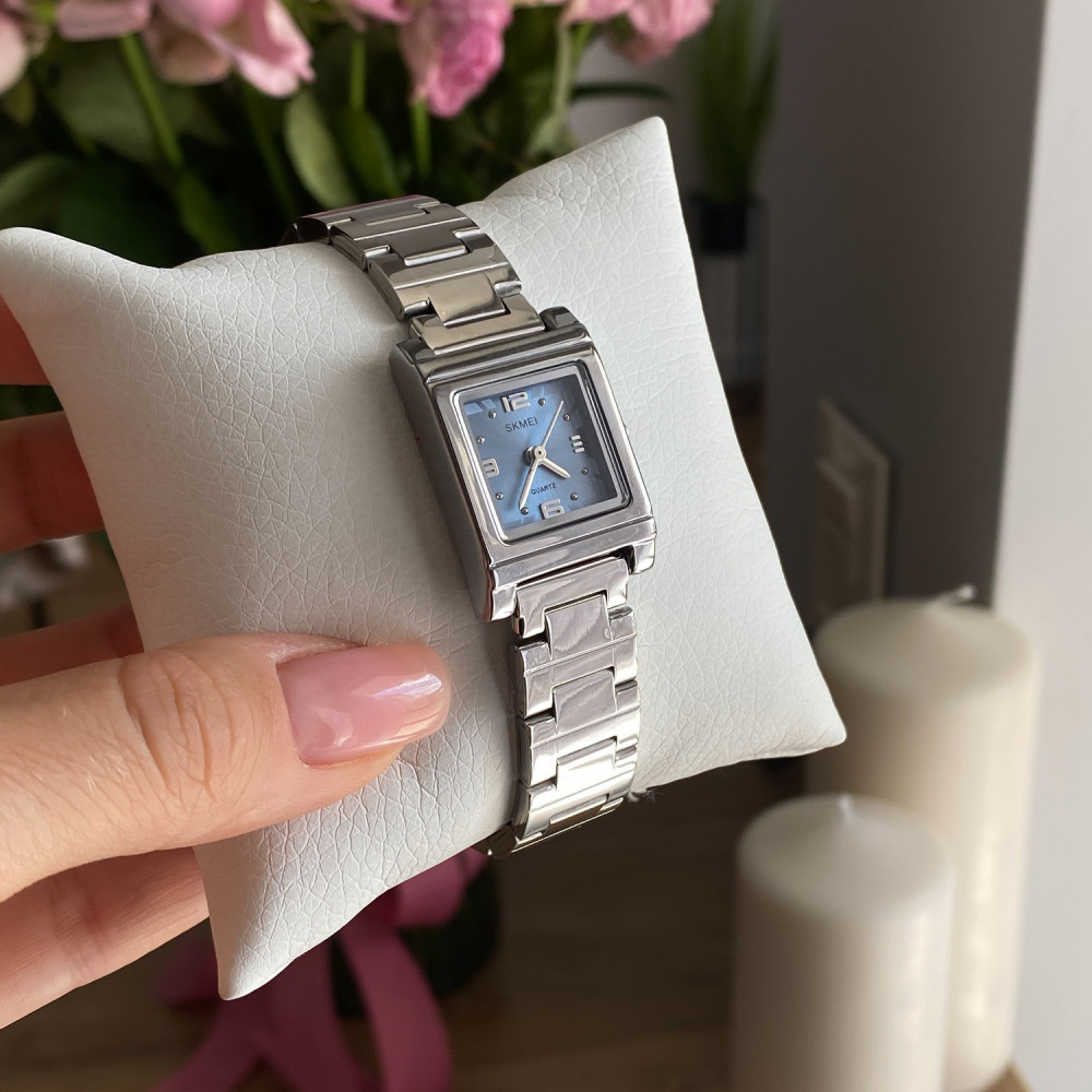 Часы Skmei 1388BU Blue – стильный женский аксессуар, сочетающий элегантный классический дизайн с практичностью. Корпус изготовлен из металла серебристого цвета, а ремешок из нержавеющей стали обеспечивает удобство в ношении. Часы имеют водонепроницаемость до 30 метров и кварцевый механизм, гарантирующий точность. Циферблат с индексами и арабскими цифрами легко читается, а квадратная форма корпуса придает современный вид. Длина ремешка составляет 20 см, ширина – 14 см, вес – 57 г. Часы поставляются с 12-месячной гарантией. Произведено в Китае.