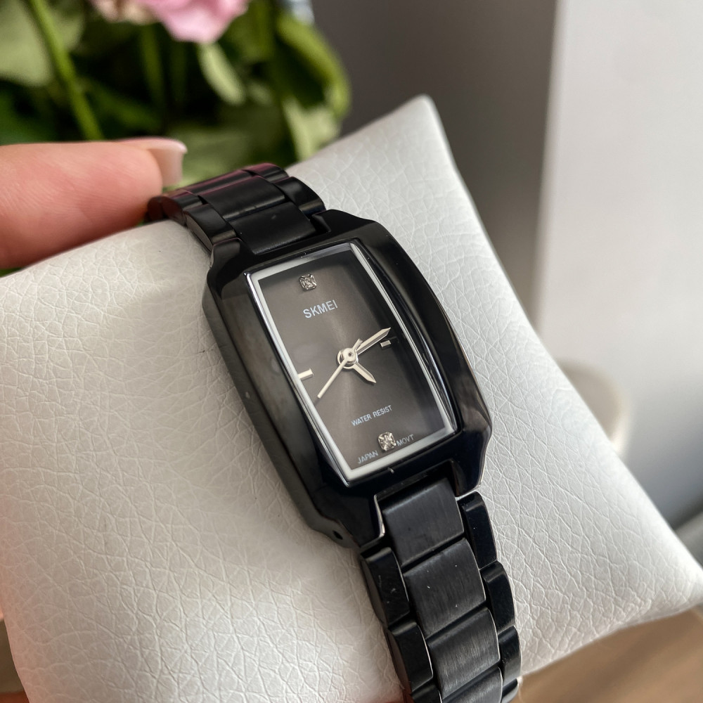 Часы Skmei 1400BK Black сочетает в себе стильный классический дизайн и практичность. Он обладает водонепроницаемостью до 30 м, что делает его идеальным для повседневного использования. имеют прямоугольную форму корпуса размерами 33 х 22 мм, Защищенные минеральным стеклом. Кварцевый механизм обеспечивает точное время отображения на стрелочном циферблате с индикацией часов, минут и секунд. мм. Вес часов – 57 г. Производитель - Китай, бренд - Skmei.
