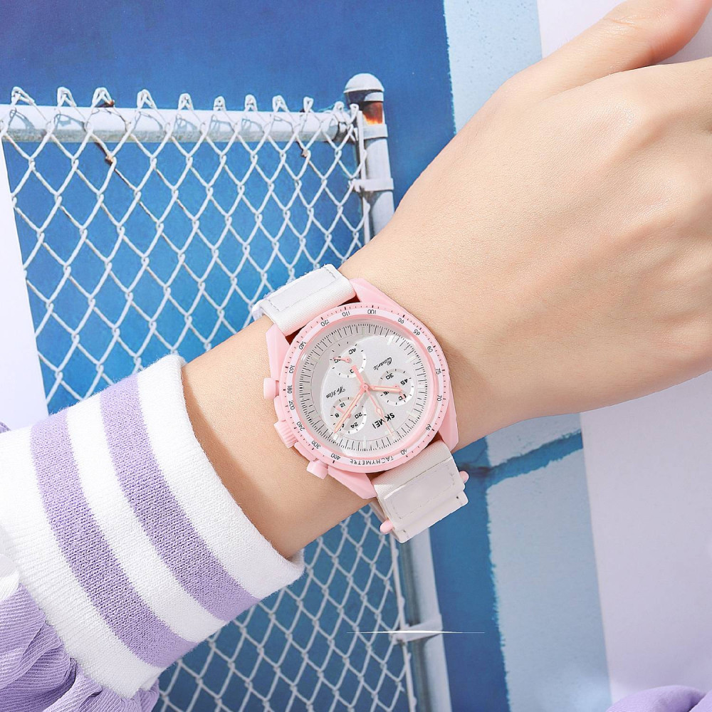 Часы Skmei 1982PK Pink – стильный женский аксессуар, сочетающий элегантность и функциональность. Корпус выполнен из поликарбоната розового цвета, а белый нейлоновый ремешок придает ему легкость и комфорт при ношении.