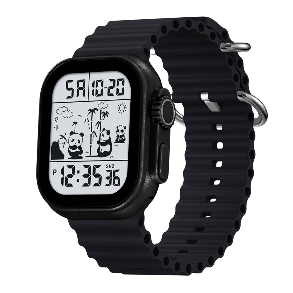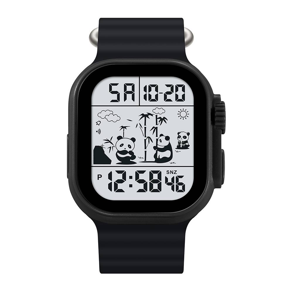 Он оснащен многими полезными функциями, такими как будильник, календарь, секундомер и второй часовой пояс. Прямоугольный корпус черного цвета с электролюминесцентной подсветкой в сочетании с черным силиконовым ремешком создает модный вид.