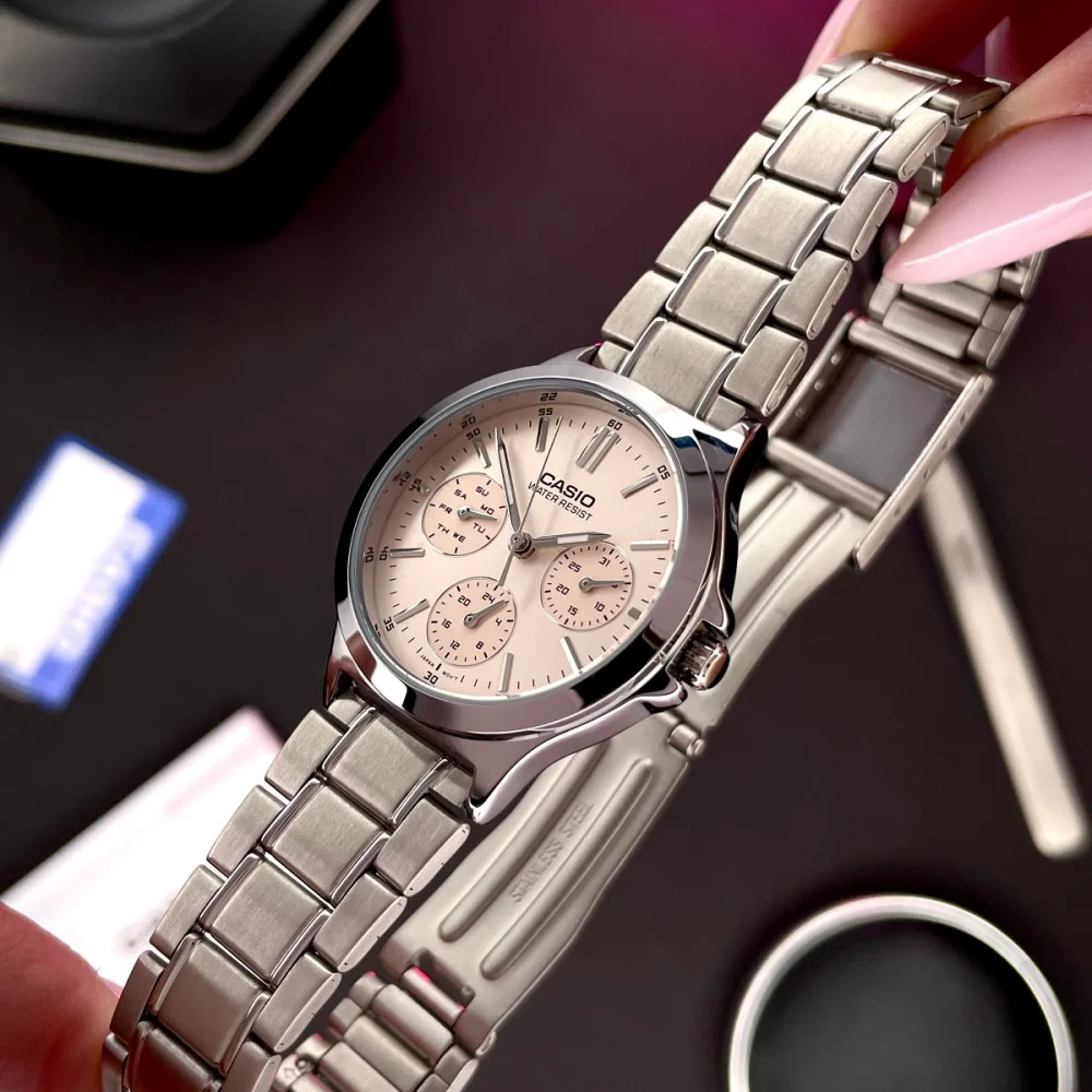 З розмірами корпусу 38 х 33 мм та легковажною вагою всього 60 г, ви зможете комфортно носити Casio LTP-V300D-4A протягом цілого дня. Додайте до свого образу цей стильний годинник від японського бренду Casio — досконале завершення будь-якого вбрання! Гарантія на годинники складає 24 місяці.