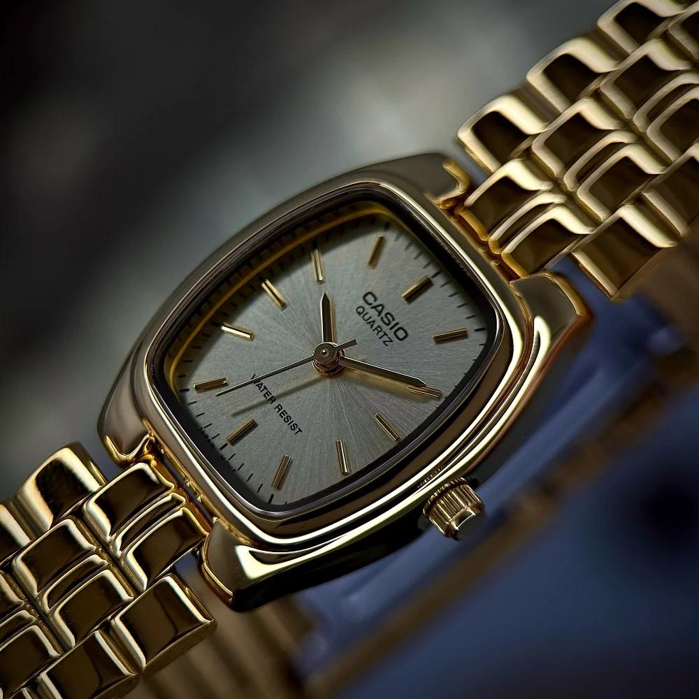 Представляємо вам елегантний жіночий годинник Casio LTP-1169N-9A, який поєднує в собі класичний стиль та сучасні технології. Цей годинник має прямокутний корпус зі сталі в розкішному золотистому кольорі, що підкреслює витонченість його дизайну. Діаметр корпусу становить 26 мм, а довжина ремінця – 19 см, що забезпечує комфортну посадку на зап'ясті.