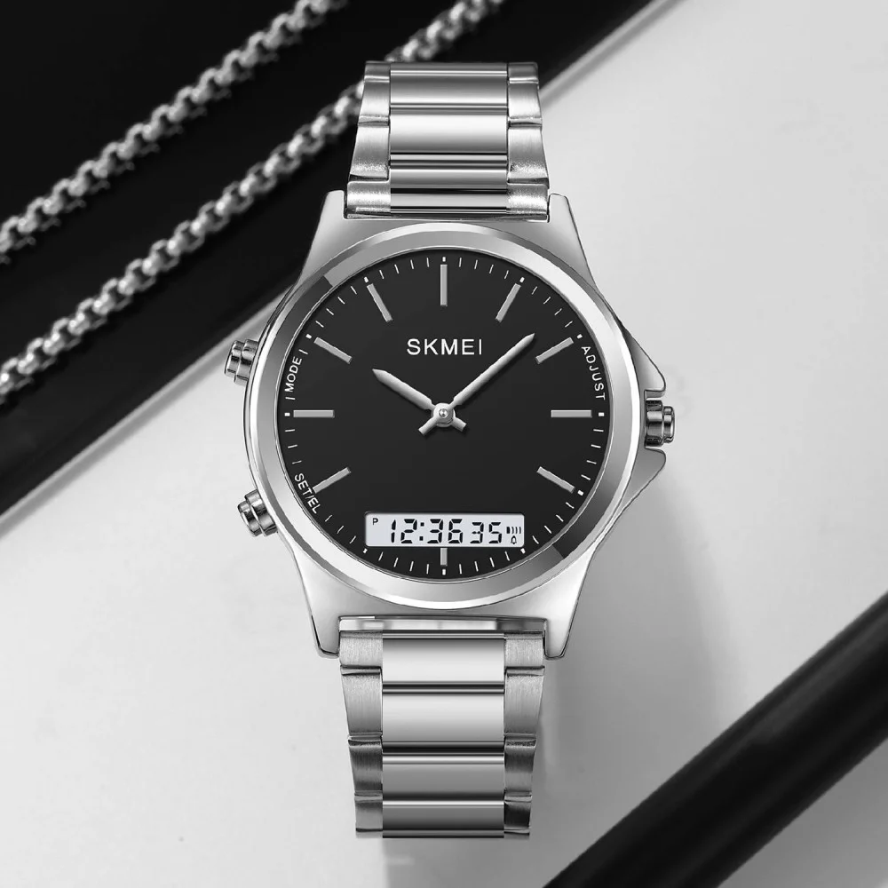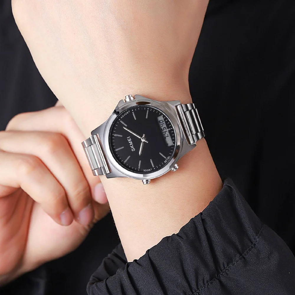 Skmei 2120SIBK Silver-Black вирізняється продуманим поєднанням дизайну і зручності в щоденному використанні. Металевий корпус із сталевим браслетом створює відчуття надійності та довговічності, а зручна застібка забезпечує комфортну посадку на зап’ясті. Сріблясто-чорне оформлення виглядає стримано та елегантно, гармонійно поєднуючись із різними стилями одягу. Прозоре мінеральне скло захищає циферблат від подряпин у повсякденних умовах, а загальна міцність конструкції дозволяє використовувати цей годинник кожного дня без зайвих турбот.