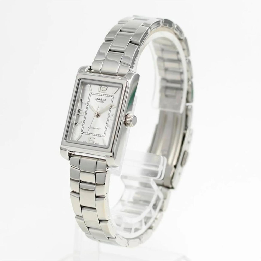 Casio LTP-1234DD-7A виконаний у класичному форматі з акуратним корпусом та браслетом із нержавіючої сталі, що забезпечує довговічність і стійкість до щоденного використання. Світлий циферблат гармонійно поєднується з металевим блиском корпусу, створюючи збалансований та універсальний вигляд. Аналогова індикація з чіткими мітками дозволяє легко зчитувати час, зберігаючи мінімалістичну естетику без зайвих деталей. Усередині встановлений кварцовий механізм, який гарантує стабільну точність ходу та не потребує складного обслуговування. Завдяки продуманій конструкції та зручному браслету цей жіночий наручний годинник комфортно сидить на зап’ясті та підходить для тривалого щоденного носіння.