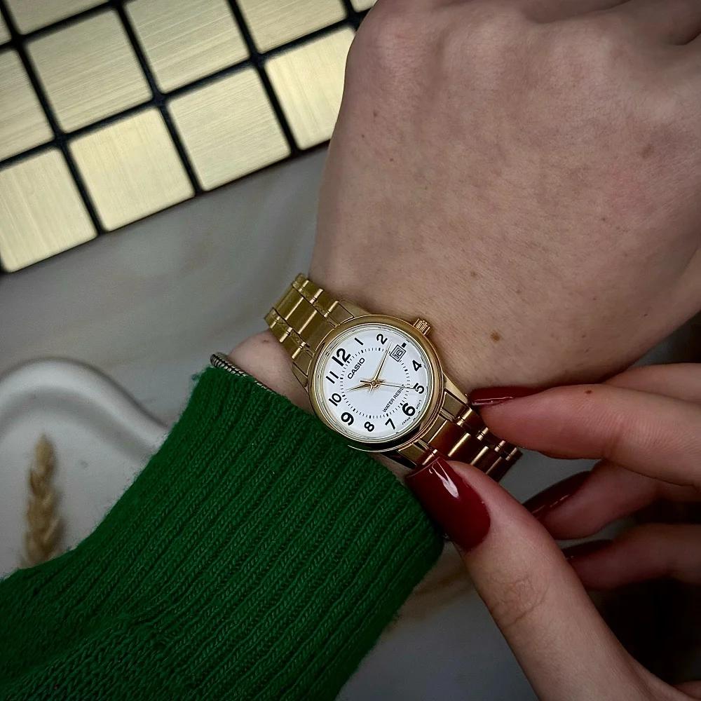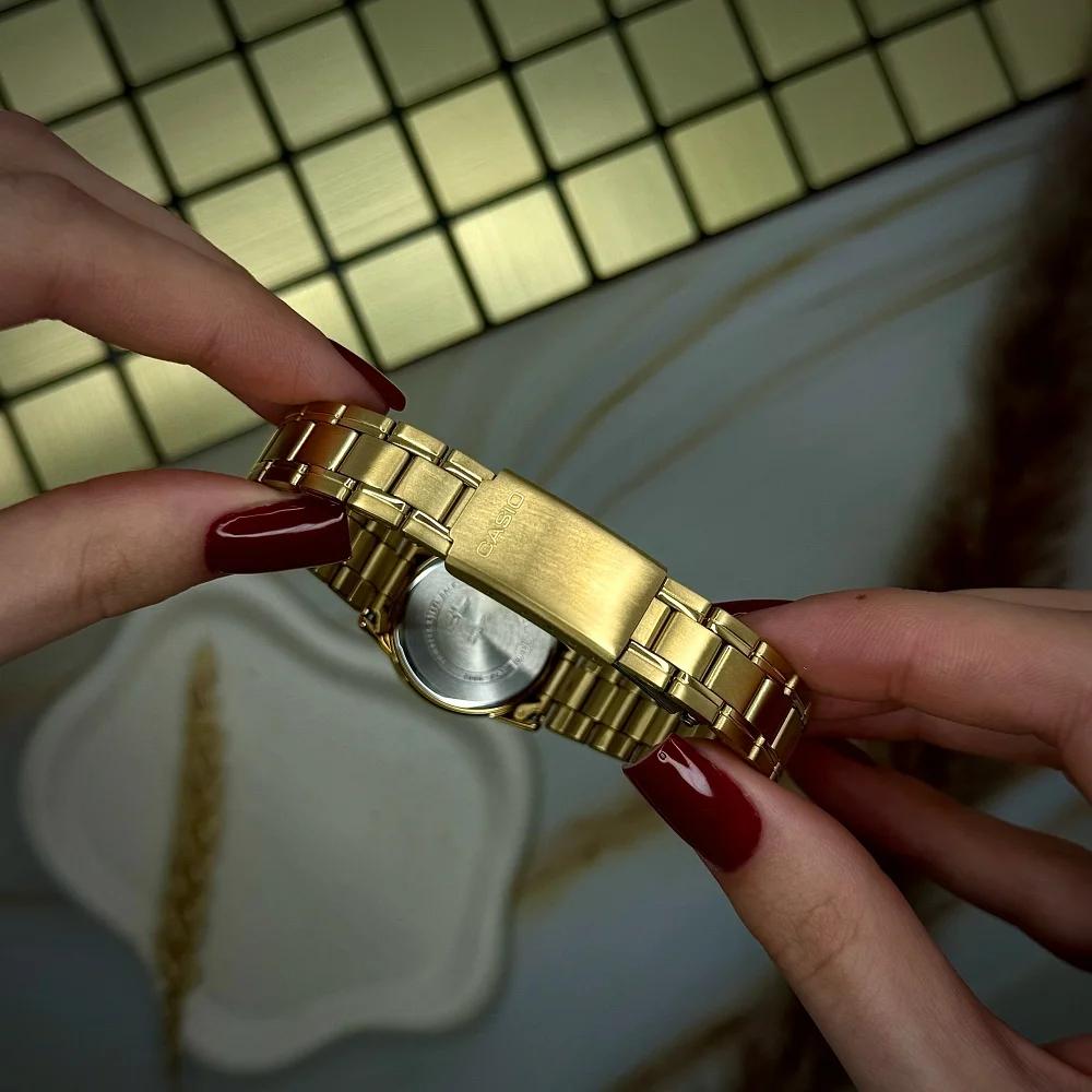 Представляємо вам жіночі годинники Casio LTP-V002G-7B – елегантний аксесуар, що поєднує в собі класичний стиль та сучасні технології. Корпус з нержавіючої сталі в розкішному золотистому кольорі та кругла форма роблять ці годинники ідеальним доповненням до будь-якого образу, додаючи нотку вишуканості.