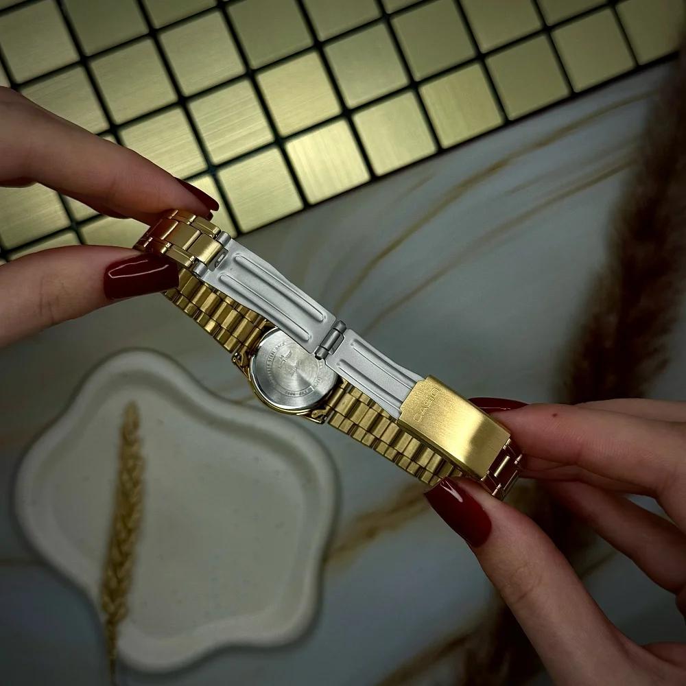 Ремінець-брслет з нержавіючої сталі забезпечує комфортну посадку на зап’ясті. Гарантія від бренду Casio на 24 місяці підтверджує якість та надійність продукції. Кожна деталь цього годинника свідчить про їх бездоганність і стильність, роблячи їх ідеальним вибором для сучасної жінки.