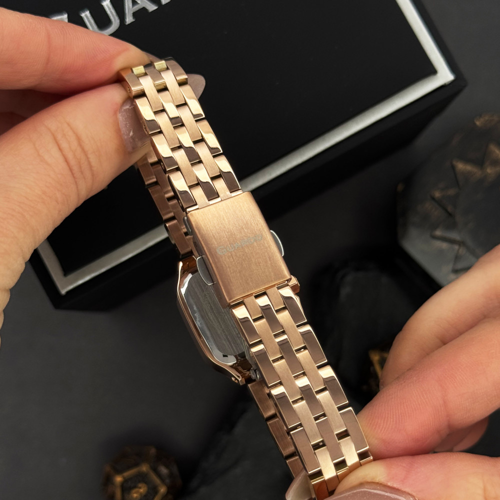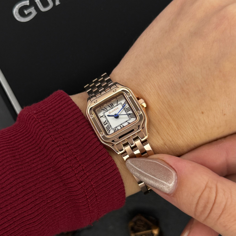 Жіночий наручний годинник Guardo 012827-4 — це акуратний і стильний аксесуар, який вдало поєднує практичність і витонченість. Модель вирізняється стриманим дизайном, що виглядає доречно в будь-якій ситуації — від щоденних справ до більш зібраних і ділових образів. Такий годинник не перевантажує зовнішній вигляд, а навпаки — додає йому легкості та завершеності, підкреслюючи природний смак своєї власниці.